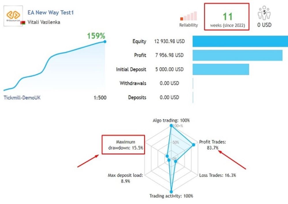 EA New Way is an advanced Expert Advisor (EA) developed for automated trading on various currency pairs, including EURUSD, GBPUSD, XAUUSD, USDCAD, NZDUSD, and AUDUSD. Compatible with the MetaTrader platform, it operates across timeframes ranging from M5 to M15. The EA incorporates three unique trading strategies and employs a proprietary indicator to accurately identify market trends. Additionally, it features an algorithm for collecting statistics and controlling slippage, offering comprehensive protection and transparency against potential broker manipulation