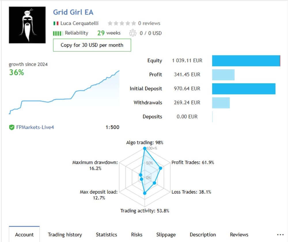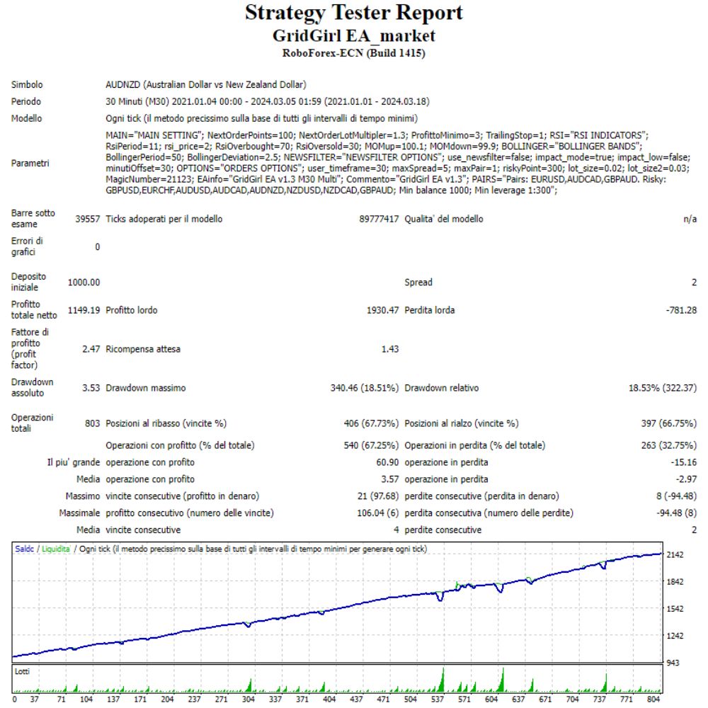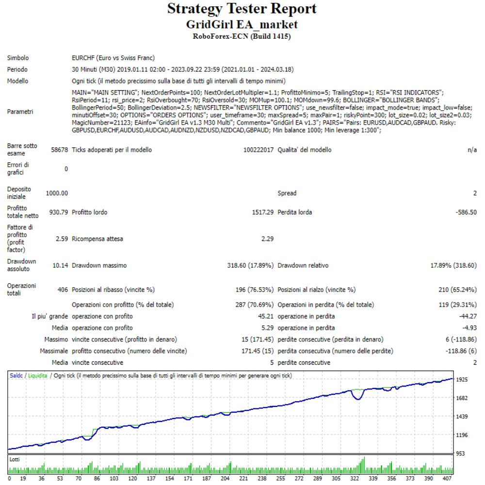 Grid Girl PRO is our exclusive Expert Advisor developed on a dynamic “smart grid” basis that is enabled only when certain conditions occur. This “smart grid”, in contrast to other EAs, adapts to the economic news and movements of several indicators. The signals are based on various indicators: a combination of RSI, Momentum, and Bollinger Bands with our unique proprietary investment news filter. In turn, it helps this filter avoid the execution of trades during key economic events and enhances the overall trading precision.