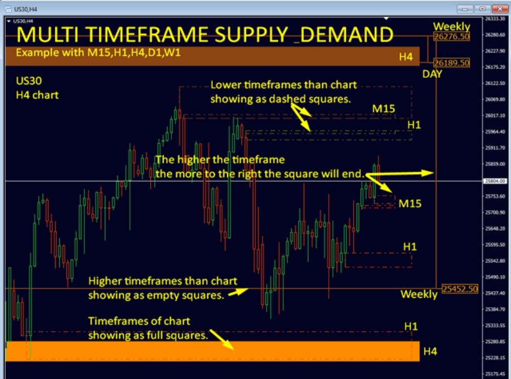- Multi-Timeframe Analysis: Evaluates supply and demand across various currency pairs and up to nine timeframes, assessing zone strength.